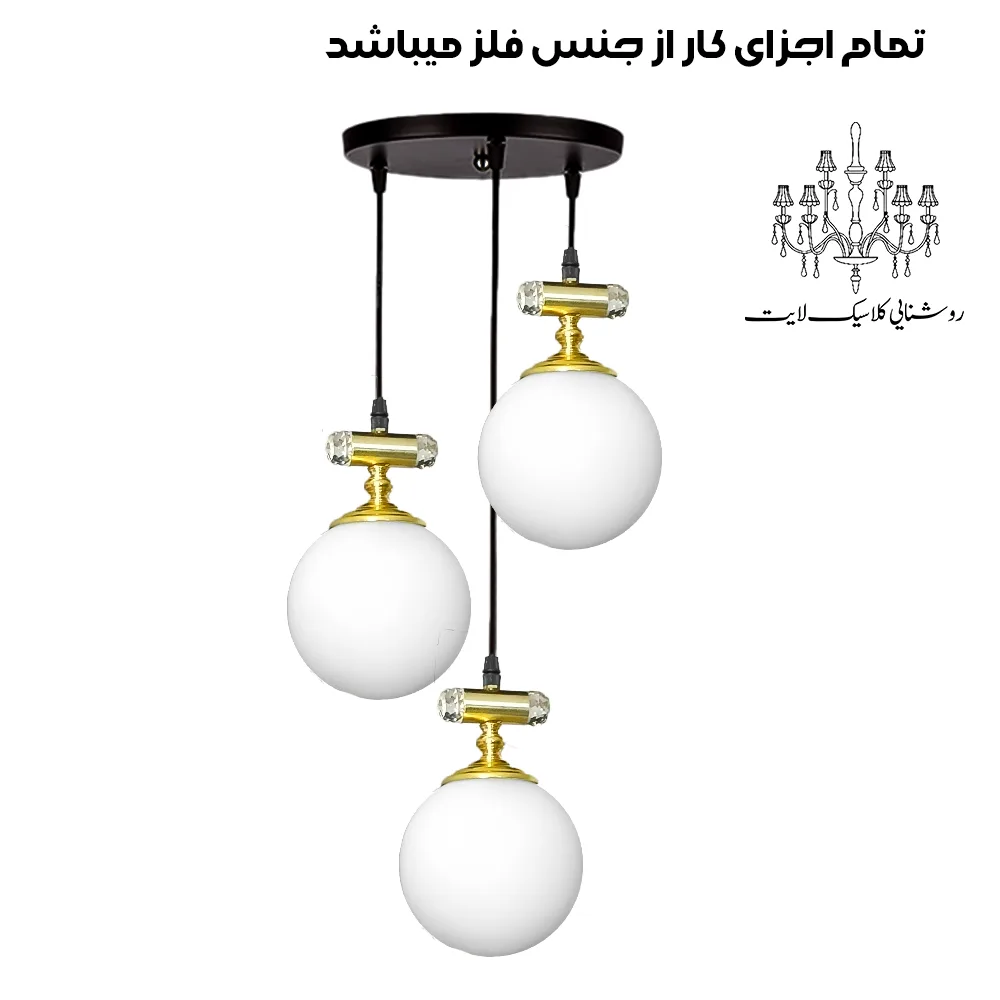 خرید لوستر آویز سه شعله ستاره با طراحی خاص و جذاب، گزینه‌ای عالی برای کسانی است که به دنبال یک نورپردازی مدرن و شیک در دکوراسیون خود هستند. بدنه این لوستر به طور کامل از فلز مقاوم ساخته شده و حباب‌های شیشه‌ای سفید و شفاف آن، نور را به صورت یکنواخت و ملایم در فضا پخش می‌کنند.