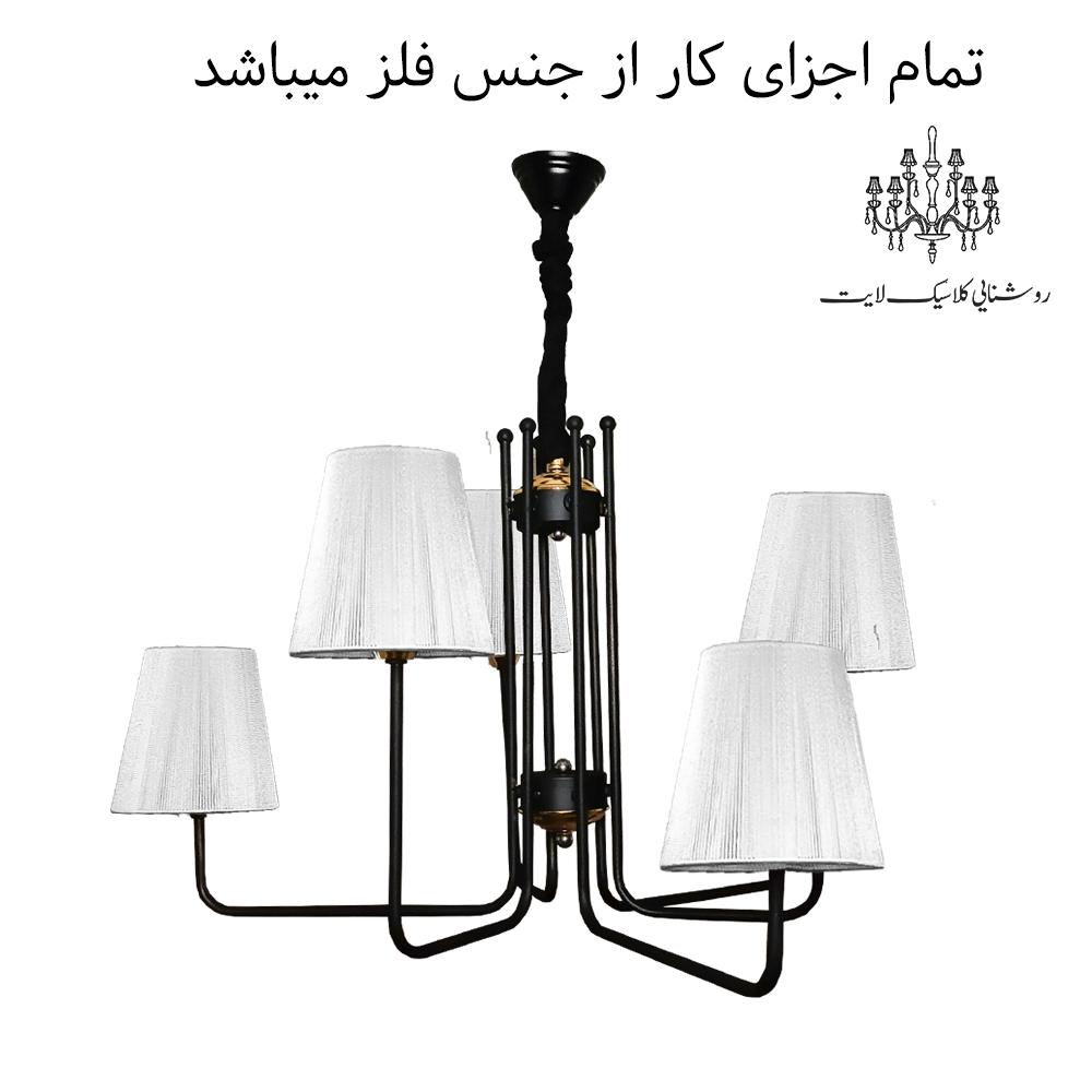 خرید لوستر ۵ شعله مدل لولهای انتخابی شیک و مدرن برای دکوراسیونهای امروزی است. طراحی لولهای با بدنهی فلزی مشکی و شیدهای سفید مکرومه، ترکیبی چشمنواز از سادگی و زیبایی ایجاد کرده است. این مدل با خطوط منظم و ظاهر مینیمال خود، جلوهای خاص به فضا میبخشد و نوری ملایم و دلنشین پخش میکند.
