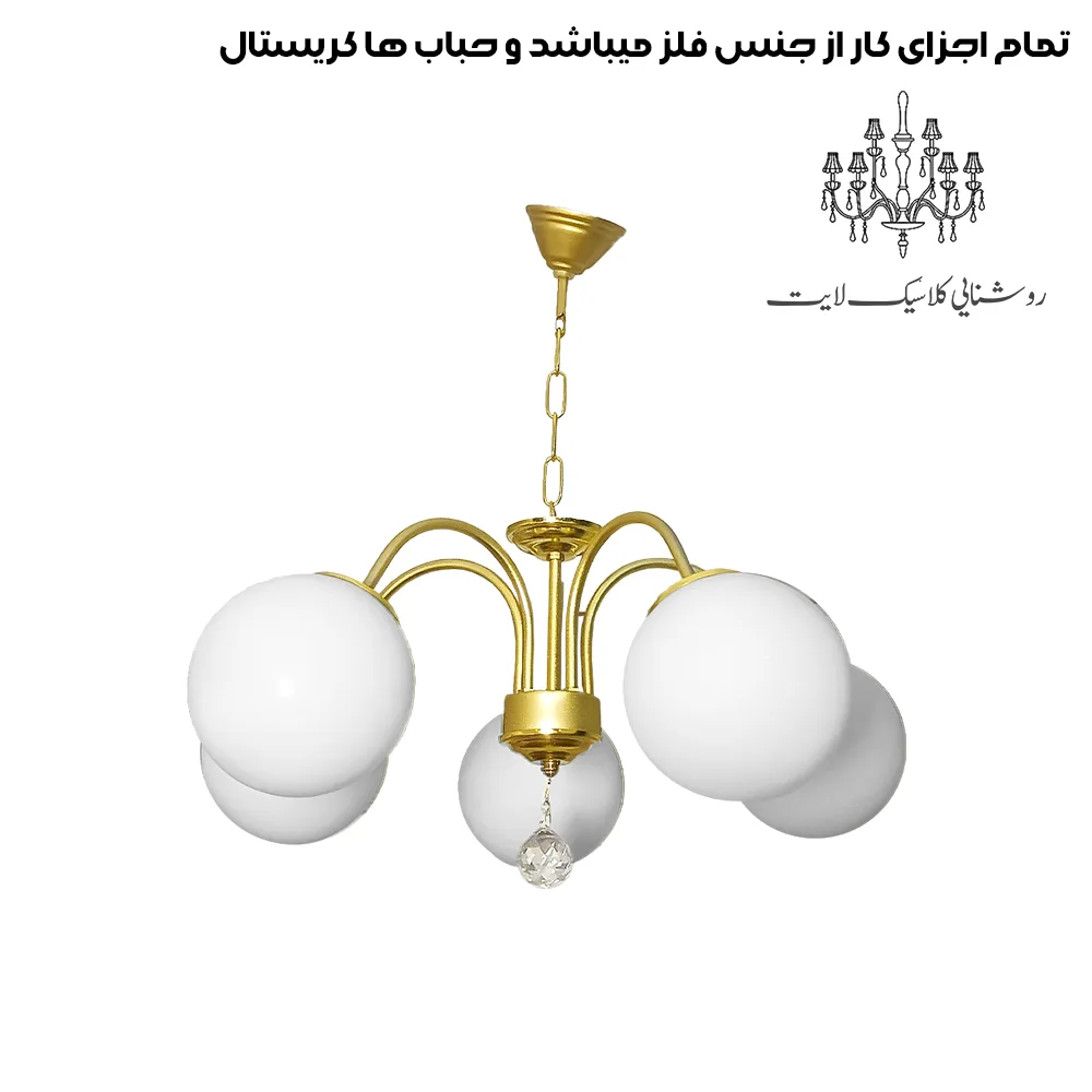 این محصول با ترکیب فلز، گوی کریستال ، در عین سادگی، حس زیبایی و مدرنیته را منتقل می‌کند و گزینه‌ای ایده‌آل برای افرادی است که به دنبال خرید لوستر پنج شعله شکوفا با کیفیت و طراحی خاص هستند.